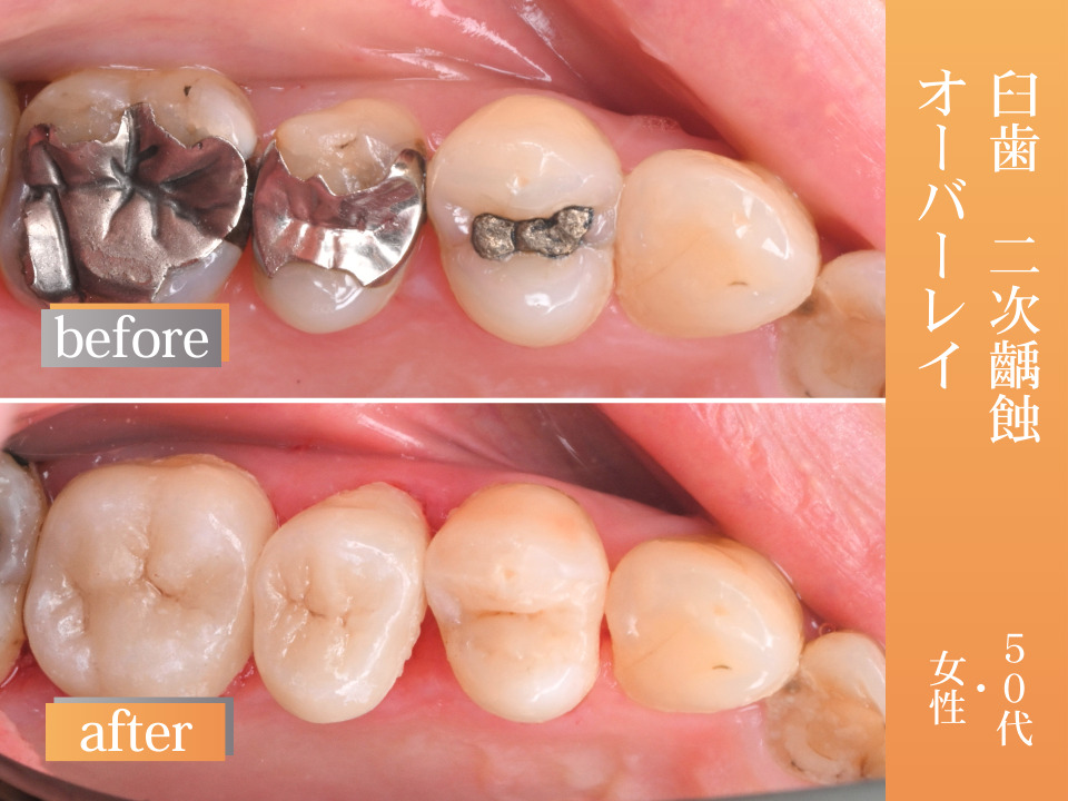 臼歯 二次齲蝕のオーバーレイ【50代・女性】