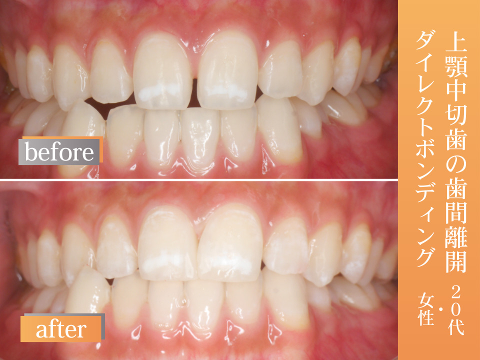 上顎中切歯 歯間離開のダイレクトボンディング【20代・女性】