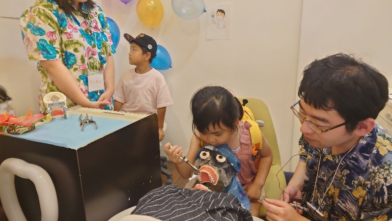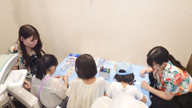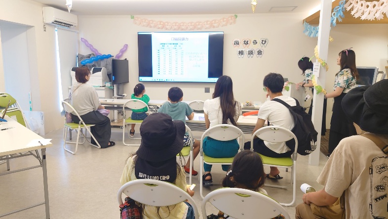 【夏祭り特別企画:歯並び相談会】 親御様からご好評いただいたのが、歯並び相談会です。 歯科医師と歯科衛生士が、今のお子様に多い歯並びの特徴や、お子様のお顔をきれいにするための知識をお話しし、個別相談も同時に実施いたしました。0歳から5歳、6歳から12歳(小学生)、12歳(中学生)以上と年齢別に時間を区切って開催し、各部先着5組限定の予約優先制とさせていただきましたが、多くの方にご関心をお寄せいただきました。