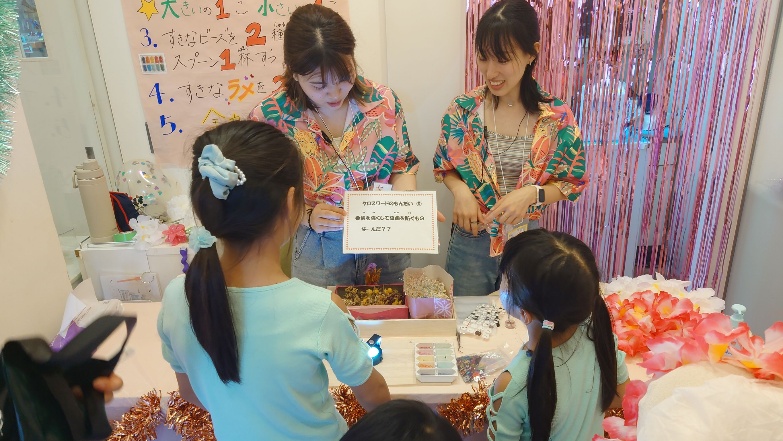 • ものづくり体験も大好評で、歯医者さんの材料を使ってピカピカ光るキーホルダーや、オリジナルのルームプレート作り、好きな型を選んでデコレーションするストーンデコ、そして可愛らしいビンに飾りを浮かべるハーバリウム作りまで、皆様の創造性が光る作品がたくさん誕生しました。
