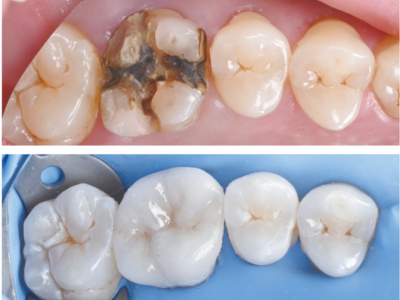 虫歯になった歯や、歯冠部を失ってしまった歯の根部を補強するものです。神経を失った歯はもろくなっているため、歯の根部にコアと呼ばれる土台を入れ、補強した上でかぶせものをします。